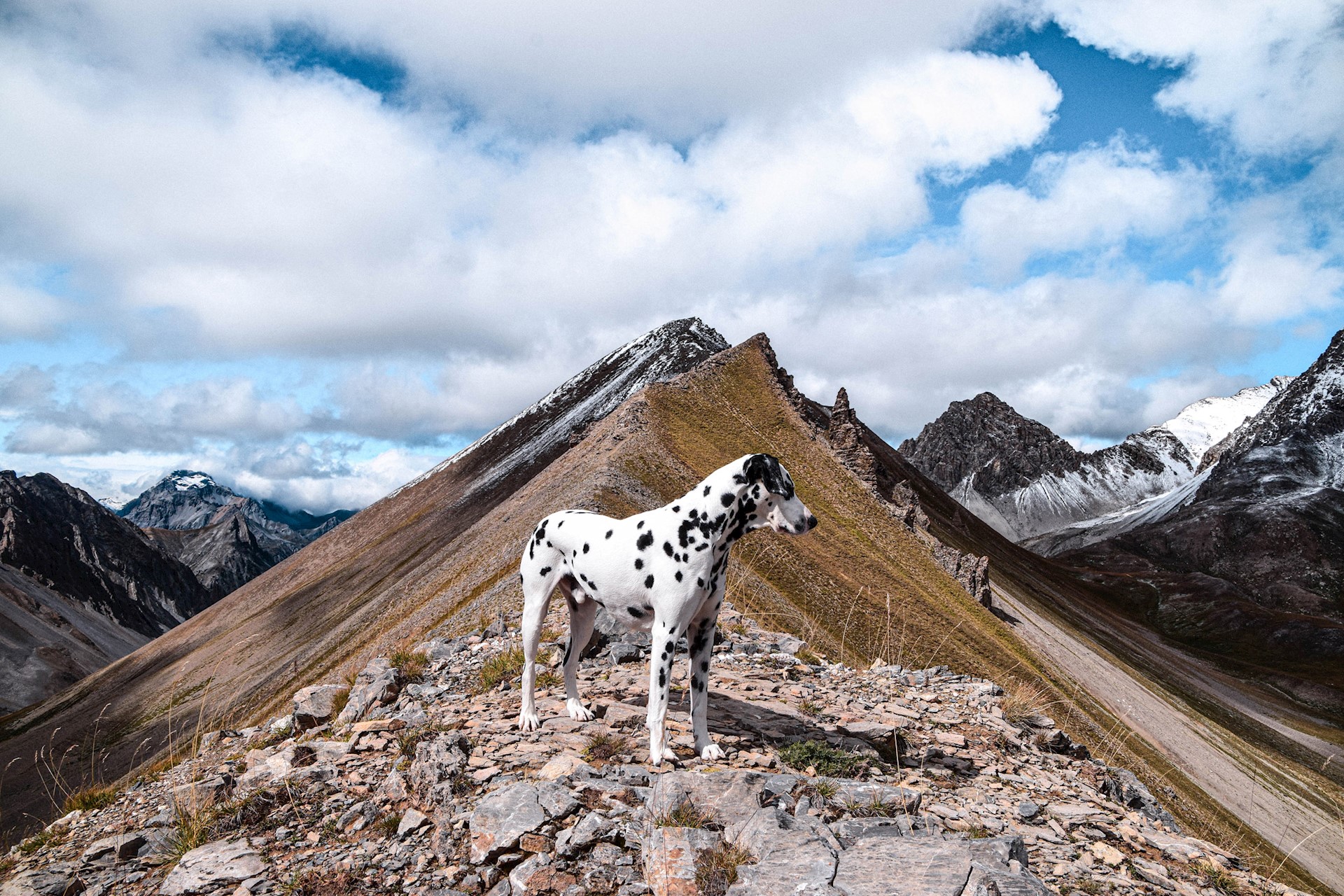"Après 2 jours de pluie, le ciel se dégage et les nuages laissent une fine pellicule de neige sur les sommets. Je décide alors de partir en randonnée avec mon chien Jasper sur un tronçon du GR® 5 au-dessus de la commune de Montgenèvre. Sur la photo, nous pouvons distinguer Jasper au col de la Lauze avec, en arrière-plan, la Roche Bernaude et l'Aiguille Rouge à gauche, le Pic du Lauzin au centre et la Pointe des Rochers Charniers à droite. Jasper, en amoureux inconditionnel des marmottes, jouit de son promontoire pour profiter d'un concert de sifflements."