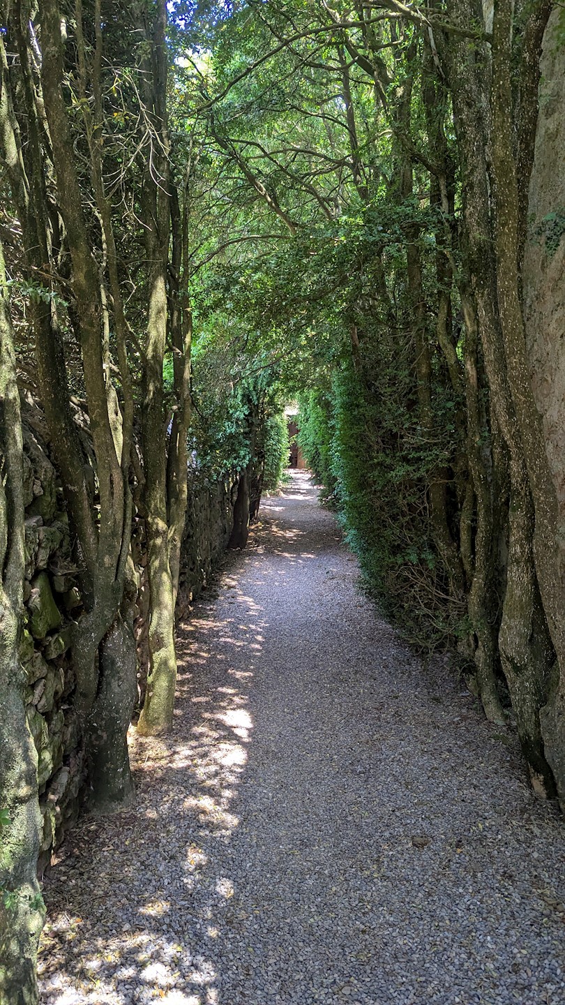 Au hameau de Potensac, nous découvrons notre première buissière : ces allées de buis, véritables arches végétales, protégeaient jadis troupeaux et bergers.