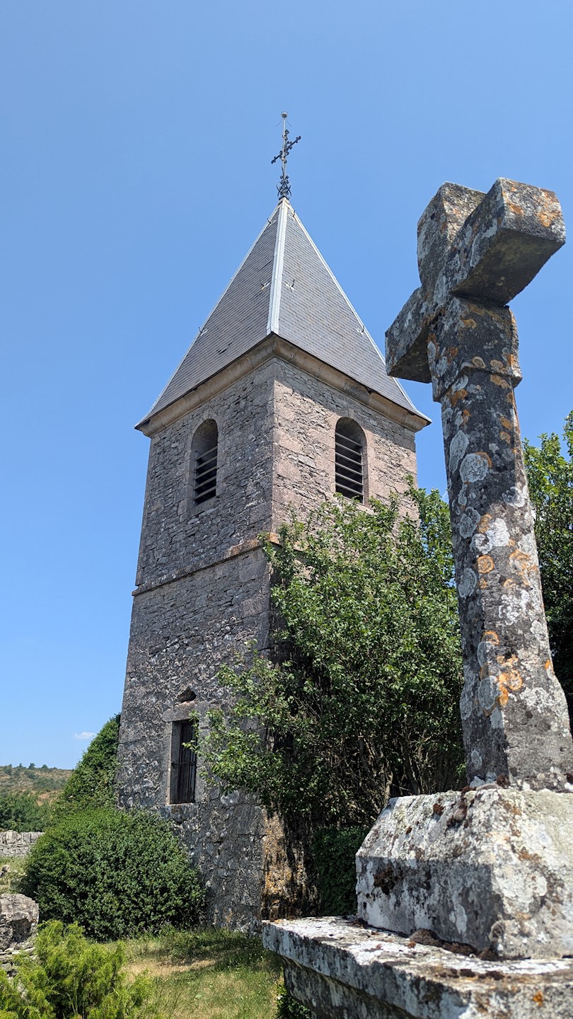 Nous prenons la pause déjeuner à l'ombre des platanes de la charmante place du village de l’Hospitalet qui constituait une étape, avec hôpital, pour les voyageurs qui se rendaient à Millau et redoutaient la traversée du Causse. Au bois de Carron, un peu plus loin, un peu plus haut, la petite chapelle de Saint-Amans nous offre un peu d’ombre.