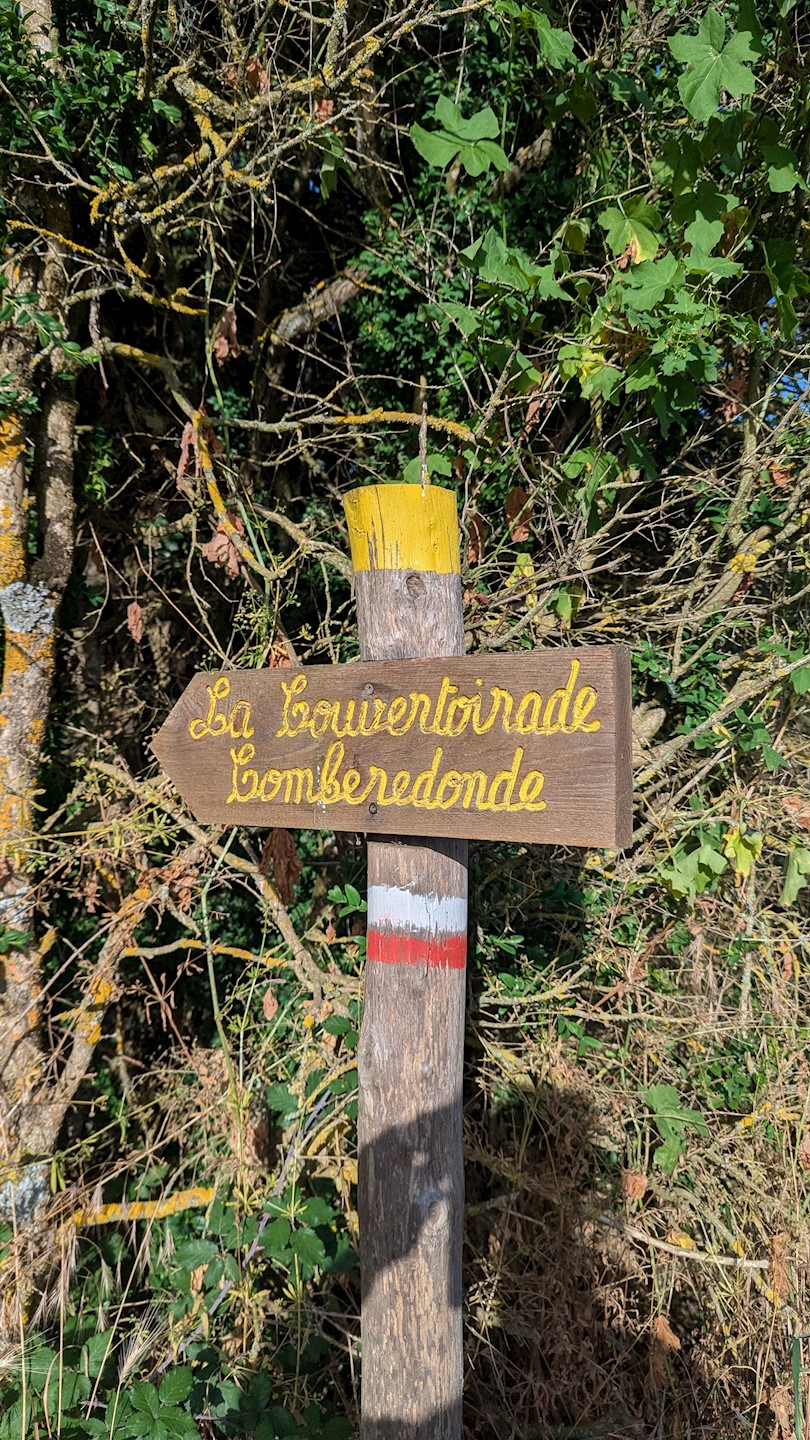 A La Couvertoirade, nous sommes logés à la chambre d'hôte "Les Mourguettes". Au-delà de l'immense et très belle chambre, c'est un lieu à part ou règne poésie, littérature et humour. Pour une fois, malgré le fait que l'étape du jour soit la plus longue du parcours, nous partons un peu plus tard pour profiter du somptueux petit déjeuner et de nos hôtes.