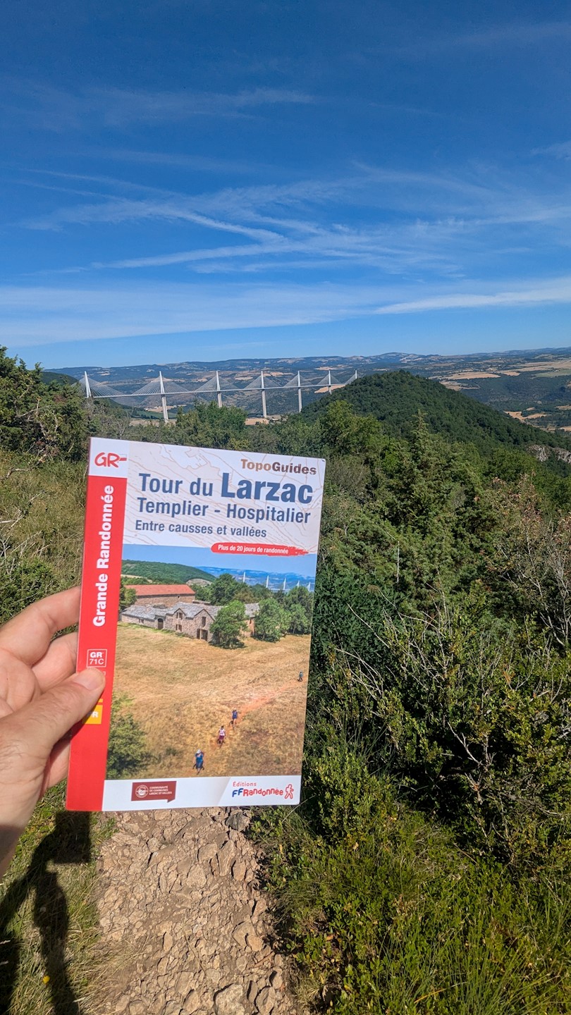 Aucun regret car le sentier qui serpente sur la corniche avec le viaduc en toile de fond est de toute beauté. L'ouvrage culmine à 343 mètres (plus haut que la tour Eiffel) pour une longueur de 2460 mètres. Avec ses haubans, cet immense voilier s'appuie au bord sur le Causse Rouge et au sud sur le Causse du Larzac.