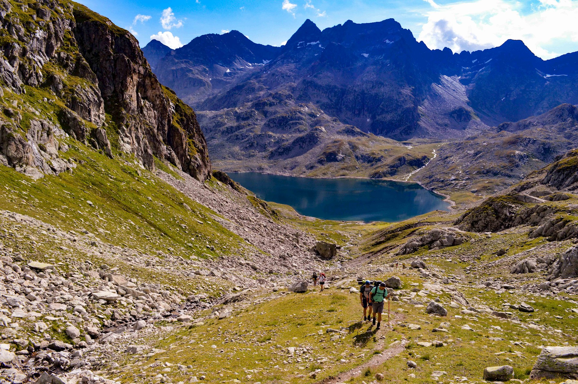 Le paysage se fait de plus en plus minéral au fur et à mesure de notre ascension. Les 2 000 mètres d’altitude sont franchis, mais il en reste encore avant d’atteindre le tout premier lac, le lac Noir . Après le lac carré, le spectacle est total : c’est un défilé d’eaux et de roches, surmonté par des sommets impressionnants. Certes, les installations hydro-électriques, très importantes dans ce secteur renommé de la « Houille Blanche » sont encore bien présentes et les barrages altèrent un peu la pure poésie naturelle des lieux, mais ils font aussi partie du paysage et témoignent d'une montagne à la fois sauvage et apprivoisée. Un sacré décor pour savourer encore une belle soirée entre amis !